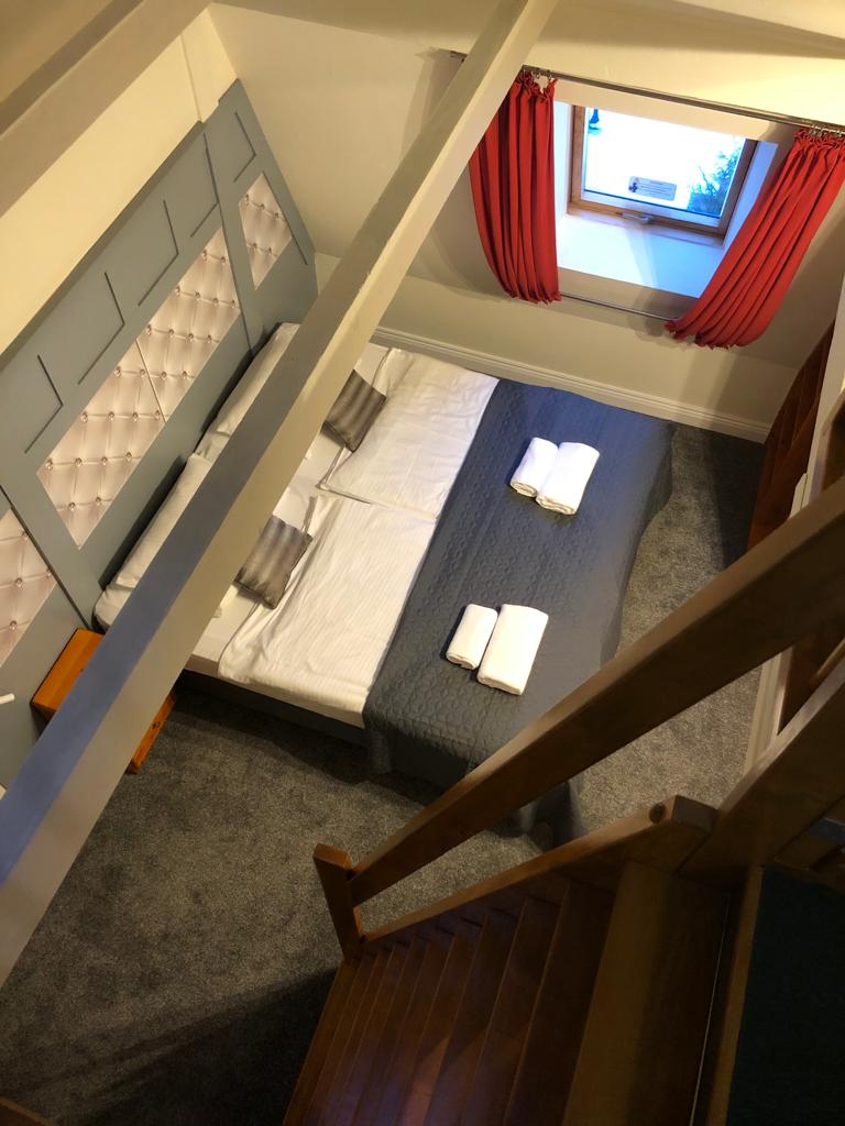 Studio-Apartment für max. 4 Personen. Im Erdgeschoss gibt es ein Zimmer mit einem Schlafsofa und einem Badezimmer, im ersten Stock gibt es ein Doppelbett und über dem ersten Stock gibt es ein Zwischengeschoss mit einem zusätzlichen Schlafplatz. Das Zimmer verfügt über ein Badezimmer mit einer Dusche, einem Haartrockner und kostenlosen Pflegeprodukten.